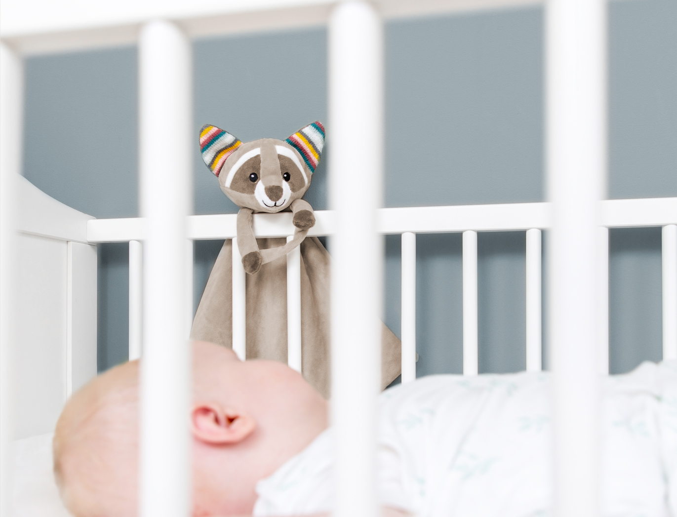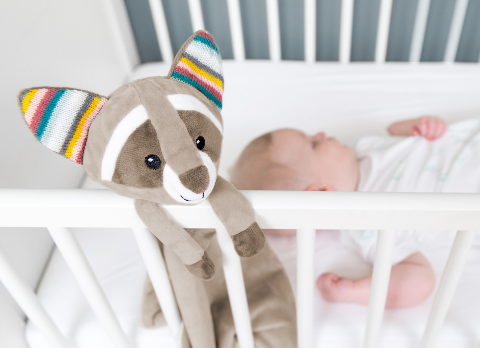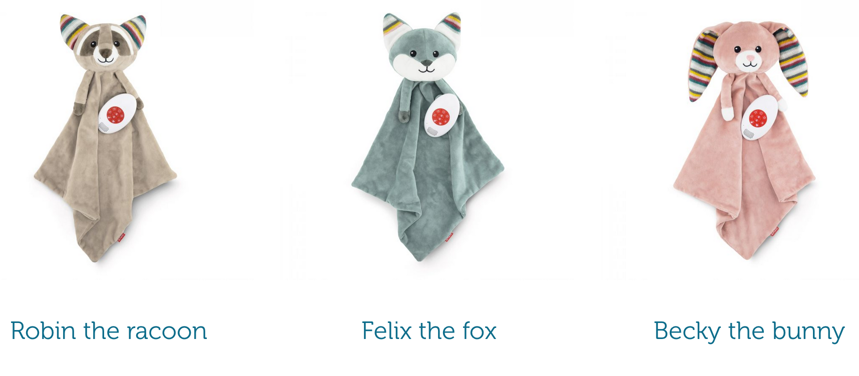 Das Kuscheltuch Robin the racoon mit Herzschlag-Simulation