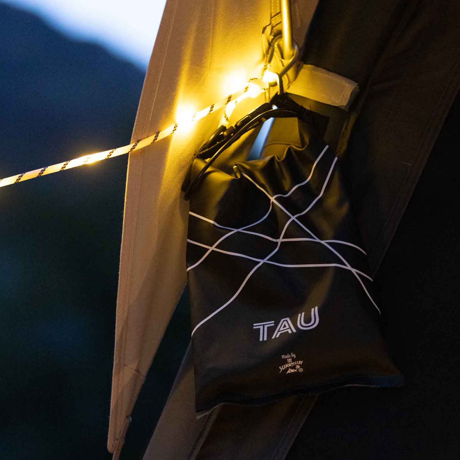 Warmweisses Licht und volle Funktionalität - das ist unser Tau. Das Seil ist nicht nur bis 150kg belastbar und wetterfest, sondern bringt euch auch noch das richtige Licht, genau dort wo ihr es braucht. Sei es zum abspannen der Markise oder des Vorzeltes oder zum aufhängen der Wäsche. Dank des Lichtes gehört das nächtliche stolpern nun zur Vergangenheit. Das Tau ist 6m lang und stufenlos an dem Controller dimmbar. Ihr bringt das Seil mit einem USB-C Stecker zum leuchten, wie zum Beispiel an einer Powerbank, an einem Handy-Adapter oder an einer fest verbauten Steckdose im Camper oder oder. Für die Aufbewahrung oder zum Regenschutz der Powerbank, kommt das Tau noch in einem Drybag.