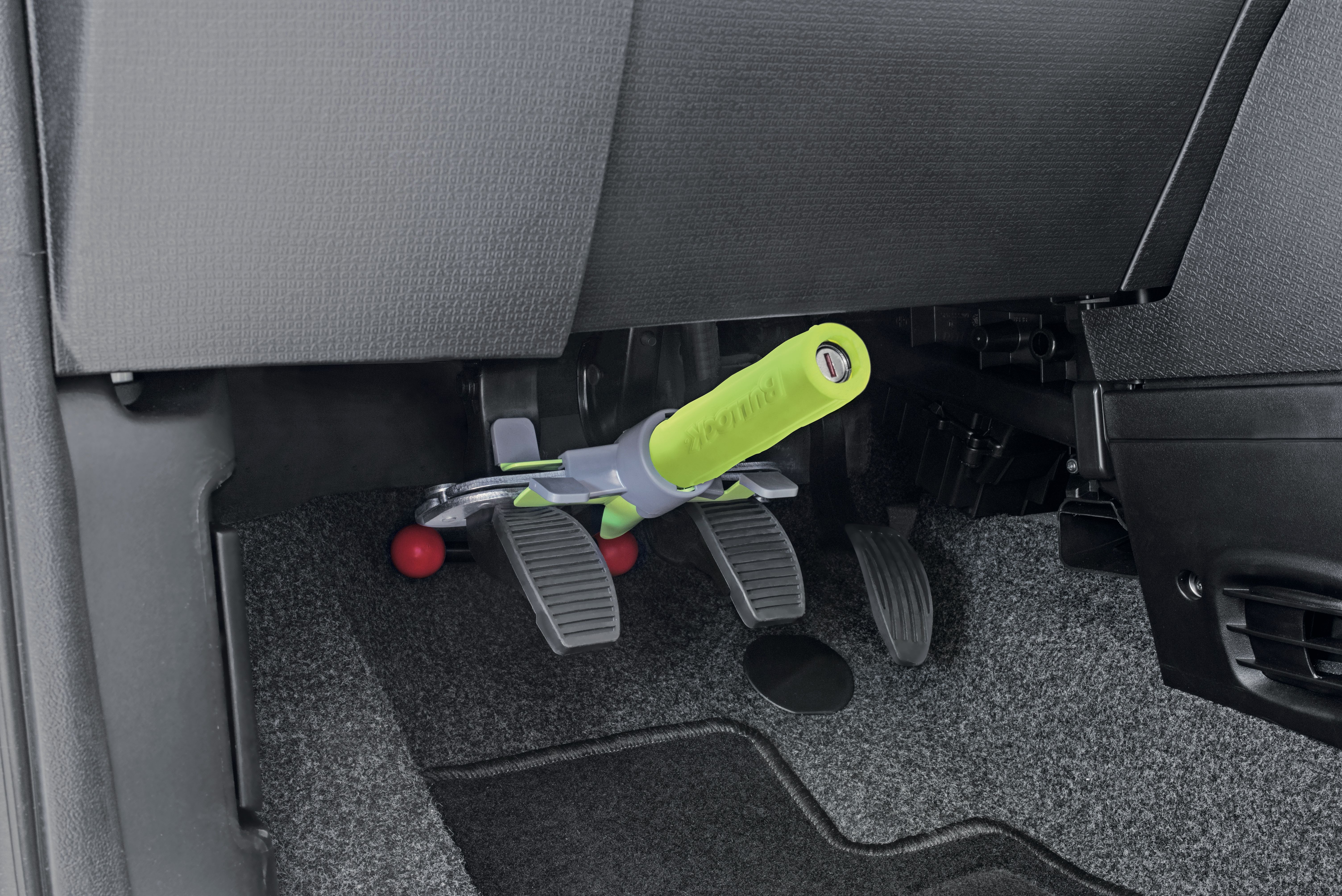 Seine Haken verriegeln automatisch das Brems- und Kupplungspedal und bieten so maximalen Schutz vor Autodiebstahl. Dank der Verwendung von gehärtetem Kohlenstoffstahl bietet Bullock® Excellence eine hohe Schnitt- und Bohrfestigkeit. Jedes Teil ist durch Verzinkung und Pulverbeschichtung vor Oxidation geschützt. Die Verriegelung besteht aus bohrfestem Material und ist zusätzlich durch einen Ring (Seeger) geschützt, der die Diebstahlsicherung vor Angriffen durch Herausziehen bewahrt.